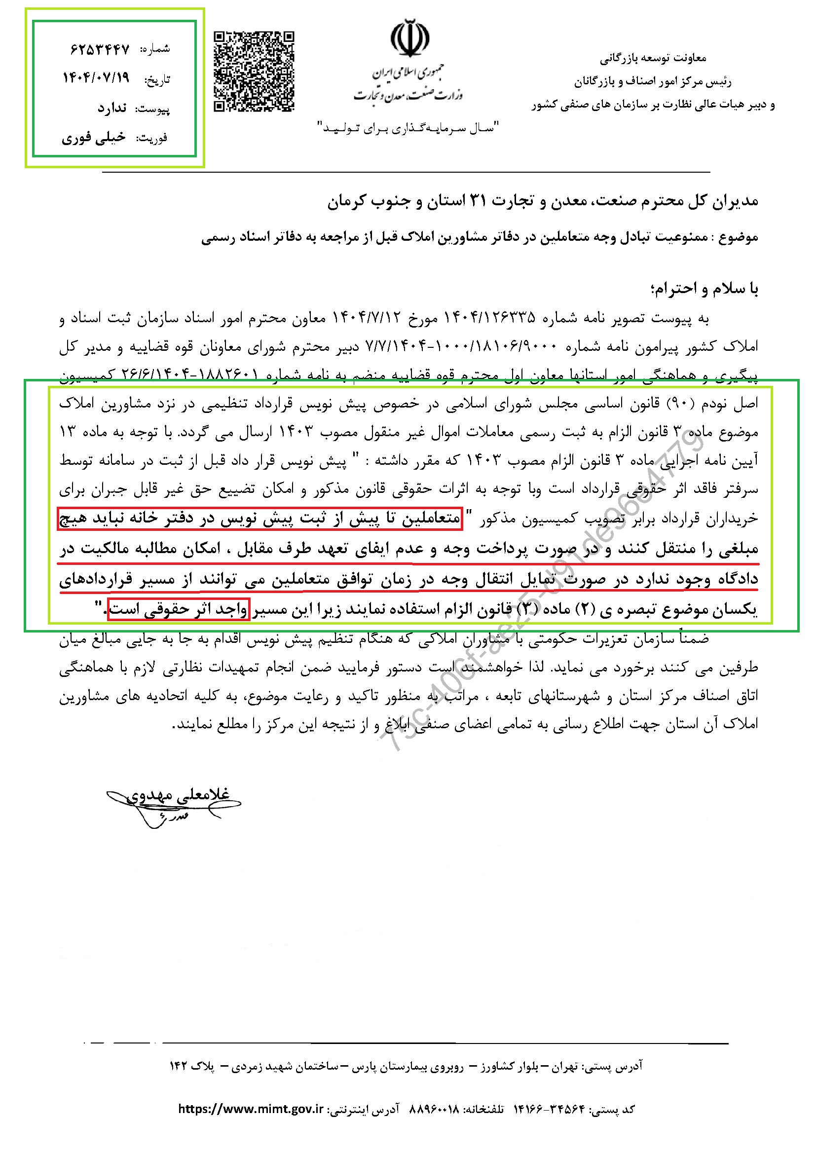 ممنوعــــیت تبــــادل وجه متعاملین قــــبل از مراج